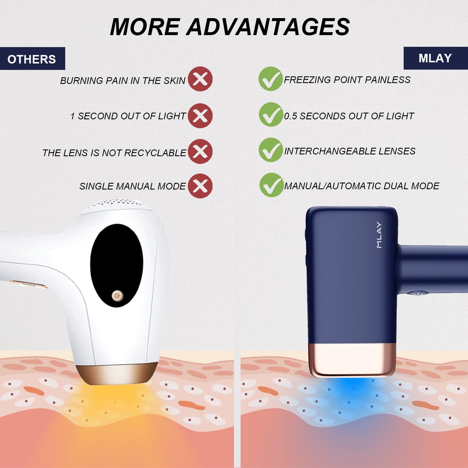 - đ§ăRapid LightăCompared with other hair removal products, IMENE/MLAY hair removal device adopts high power mode, which can produce light twice a second on average, and the hair removal effect is very significant.